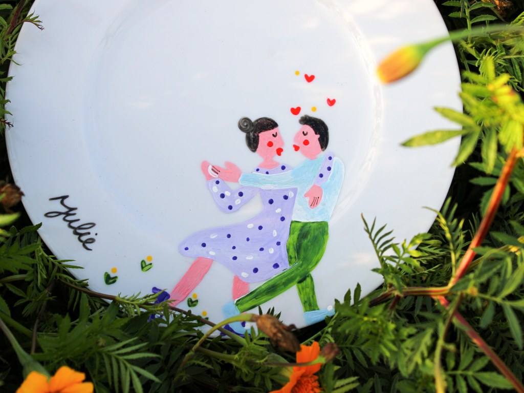 Studio JuJu voorziet borden met een persoonlijke illustratie. Perfect om iemand op een unieke manier te verrassen. Geef ze bijvoorbeeld als cadeau om je meter, peter of getuige te vragen, of gewoon zomaar voor een speciaal moment. Prijs: €38/ bord (wachttijd: ca. 2 weken)